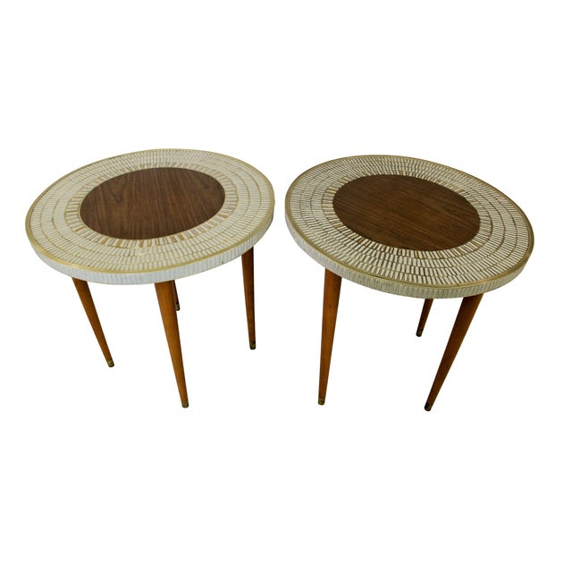 MCM End Tables with Tiled Top - 2 | Chairish from chairish-prod.global.ssl.fastly.net Check out our mcm end table selection for the very best in unique or custom, handmade pieces from our coffee & end tables shops. Showing results for mcm dining table. African padauk wood, orange base, orange shades.